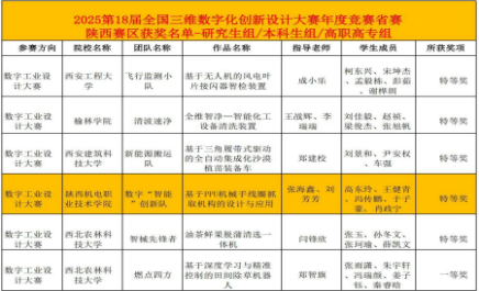 近日,2025年第18届全国三维数字工业设计大赛(简称“全国3D大赛”)省赛已顺利结束。来自陕西省高校的研究生组、本科组及高职组300多支队伍同台竞技。我院派出由张海鑫和刘芳芳老师共同指导(成员:高东玲、王健青、冯传鹏、于子豪、肖政宁)的数智“文机”创翼队经过数月的初赛、复赛与网络海选,凭借出色表现荣获陕西省特等奖,这也是唯一获得特等奖的高职院校。